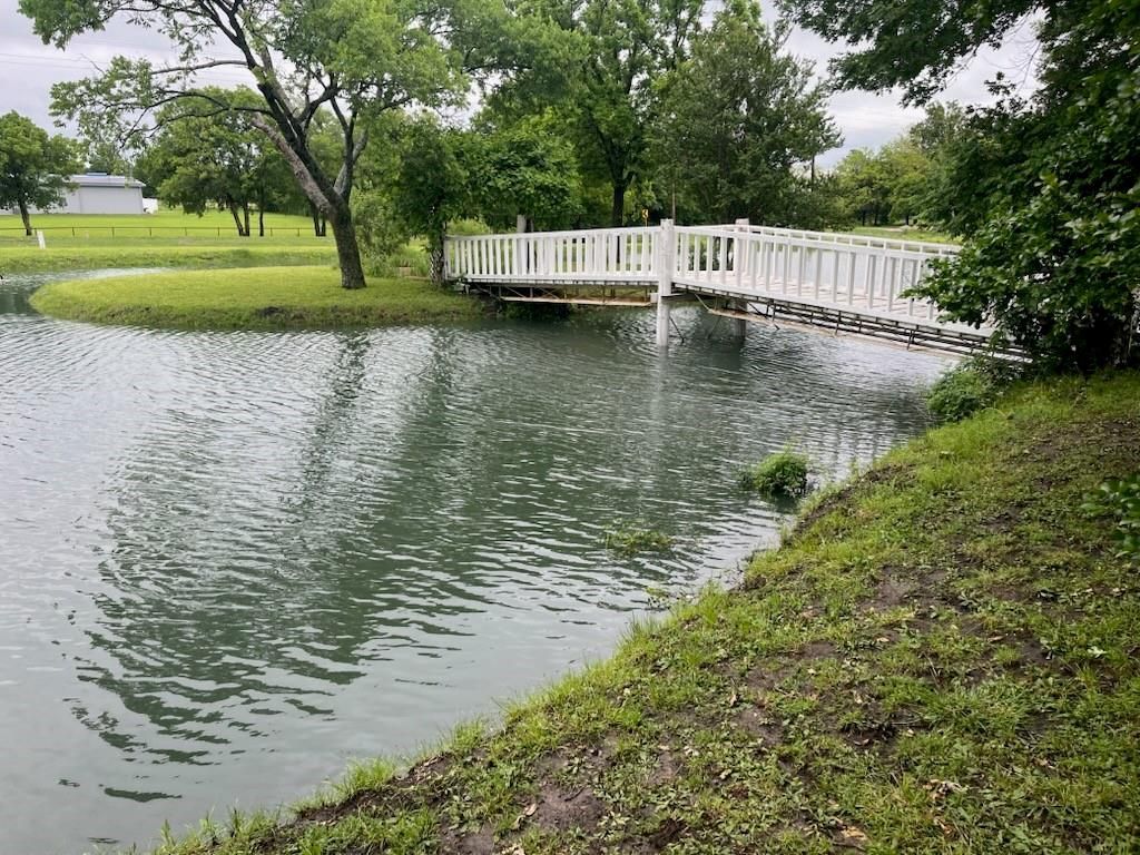 Paradise awaits you with this 2.59 acre property with a fully stocked pond with catfish and bluegill. No HOA, PID or MUD. This charming single story brick home has 3 BR, 2.5 BA, 2 dining, and 2 living. There is a massive room that could be used for a game room or MIL suite with a separate entrance, kitchenette with built ins, and a bathroom close by. Many recent updates have been completed including new LVP flooring and baseboards throughout, new paint throughout, bathrooms have been remodeled, kitchen cabinets painted with added backsplash, and new lighting. Roof replaced in 2022. Kitchen is equipped with a breakfast bar, walk in pantry and is open to the living area. Large master bedroom has an ensuite with dual sinks, oversized walk in shower, and 3 walk in closets. This property gives you plenty of space inside and outside under your covered back patio enjoying the spectacular garden views. This is a Country oasis but all within close proximity to amenities of the city. Riding lawnmower and bucket trailer are negotiable.