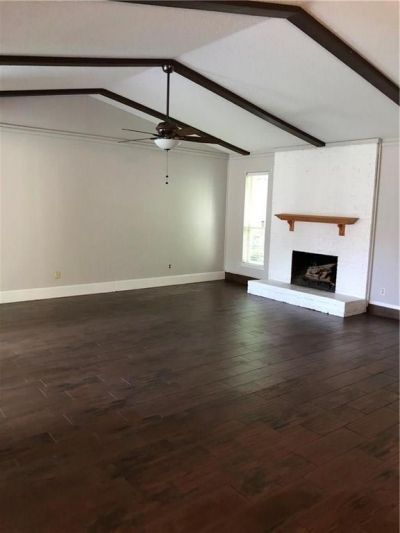Don't miss this lovely move in ready home. Ceramic Tile that looks like wood throughout. Spacious Family Room with floor to ceiling wood burning fireplace. Lovely wood beams. No carpet with low maintenance flooring. Large Primary Bedroom with walk in closet and own bathroom. Refrigerator provided, that is Stainless steel with French doors. Glass sliding door leads to roomy backyard. Two car garage in rear. All of this with easy access to shopping, restaurants and major roads...great location. Looking for a strong tenant that can move in sooner rather than later. Minimum 3X rent in income required along with other tenant criteria.